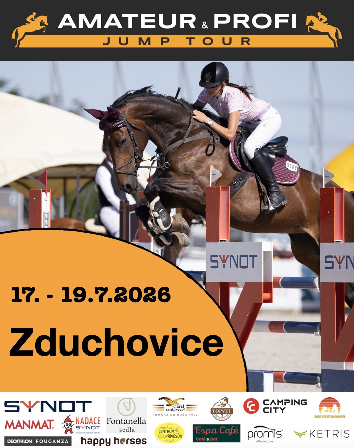 S potěšením Vás zveme na jedinečnou událost v jezdeckém kalendáři roku 2026 – Amateur Jump Tour a Profi Jump Tour, které se konají v krásném prostředí jezdeckého areálu ve Zduchovicích ve dnech 17. - 19. července.