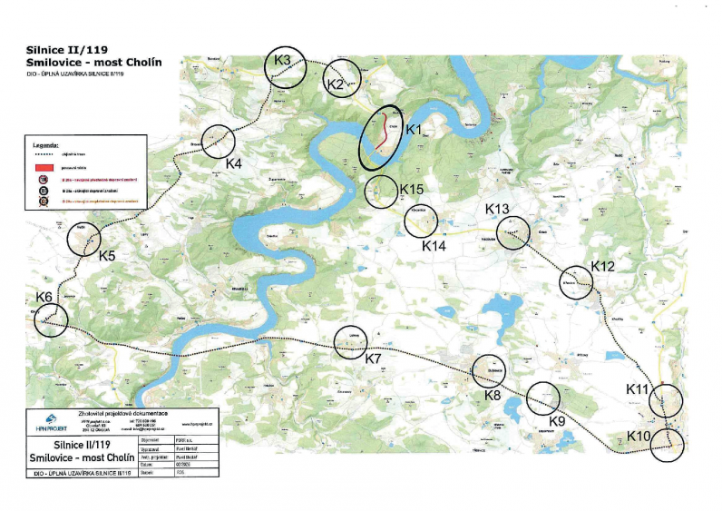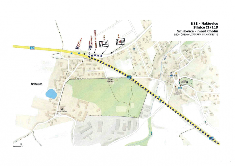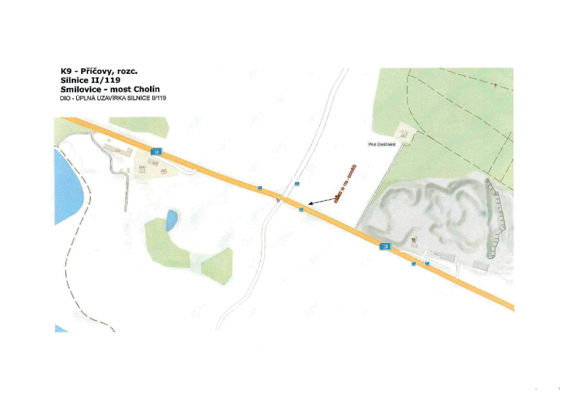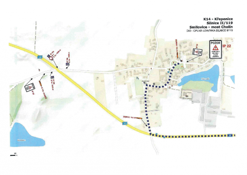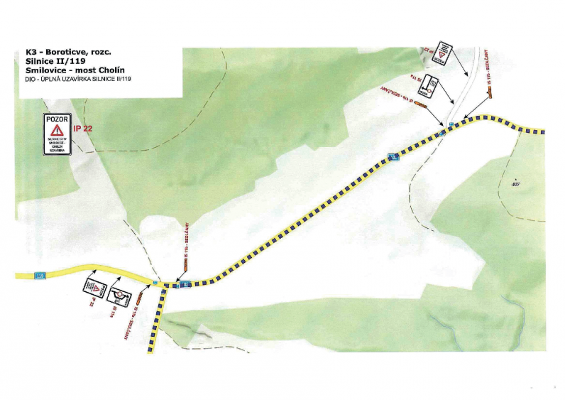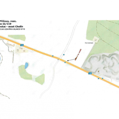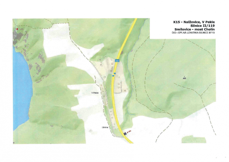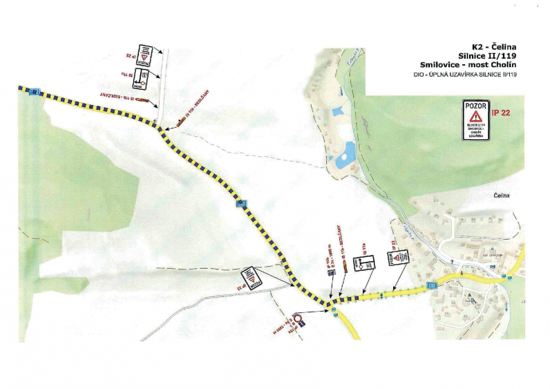 Rozsah uzavírky Uzavřen bude úsek silnice II/119 v km 13,340 – 14,335 mezi obcí Smilovice a mostem Cholín. V uvedeném období nebude tímto úsekem umožněn průjezd.