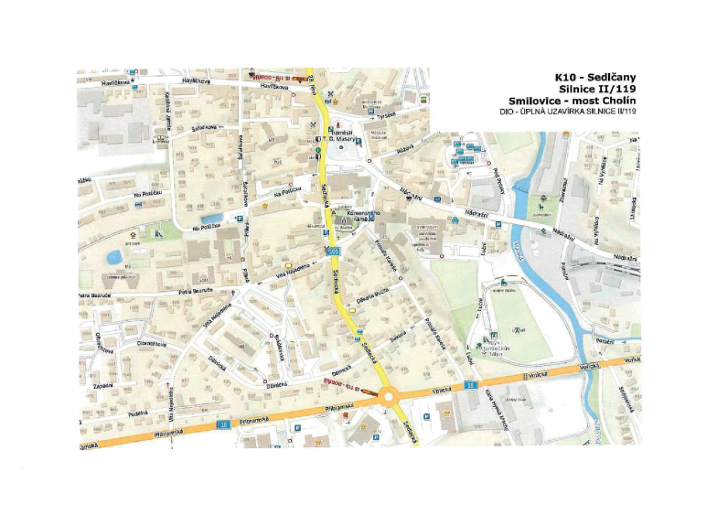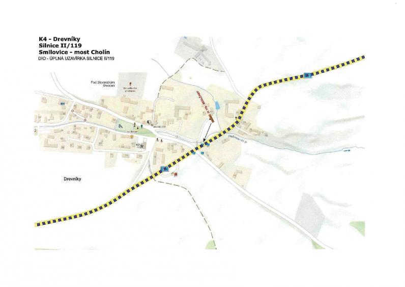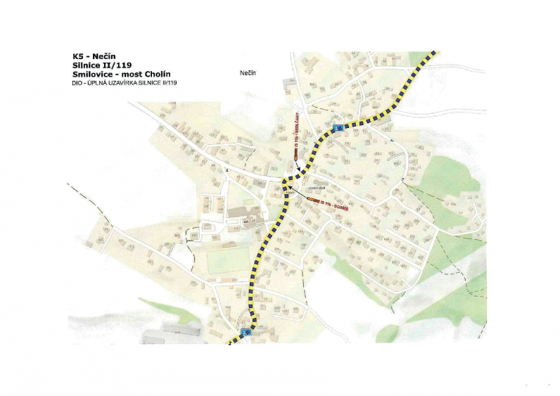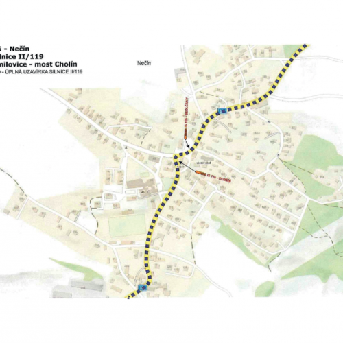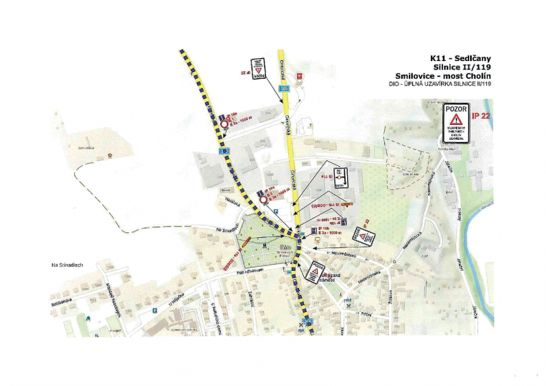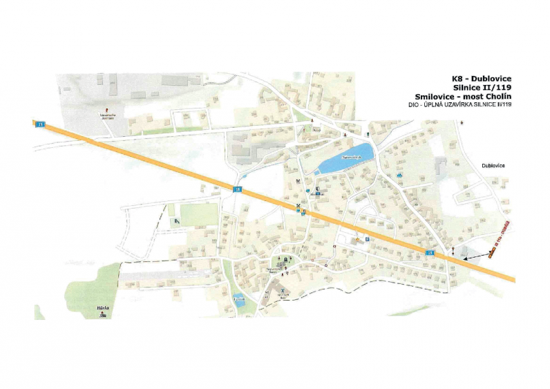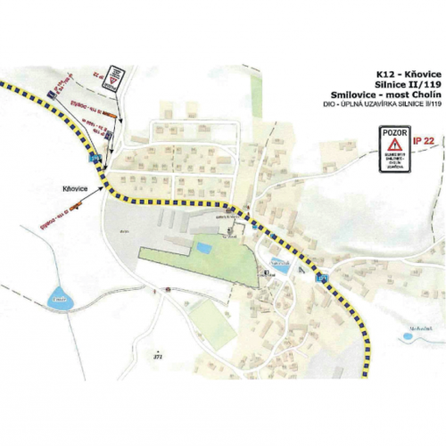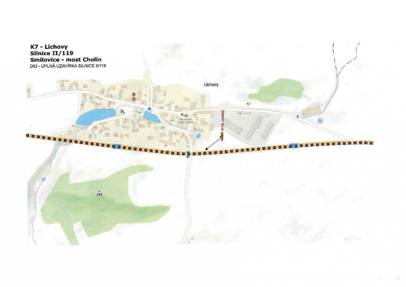 Rozsah uzavírky Uzavřen bude úsek silnice II/119 v km 13,340 – 14,335 mezi obcí Smilovice a mostem Cholín. V uvedeném období nebude tímto úsekem umožněn průjezd.